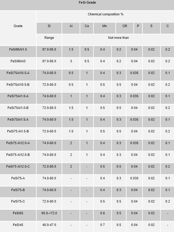 Ferrous Silicon alloy--Grade & Chemical composition